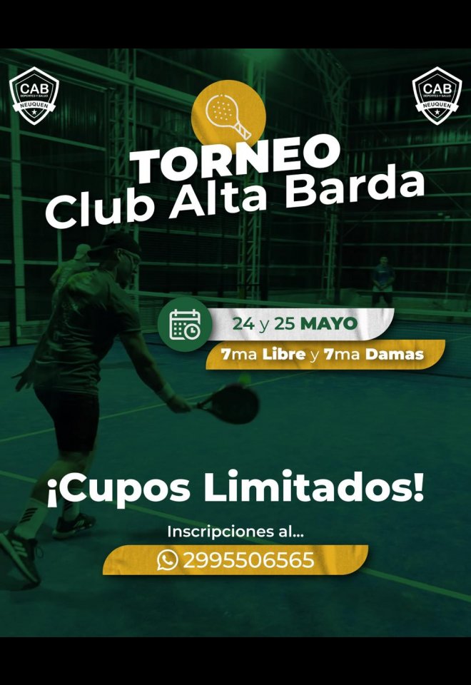 »» Evento: Torneo Club Alta Barda »» Localidad: Neuquén »» Fechas: 24/05/2025 al 25/05/2025