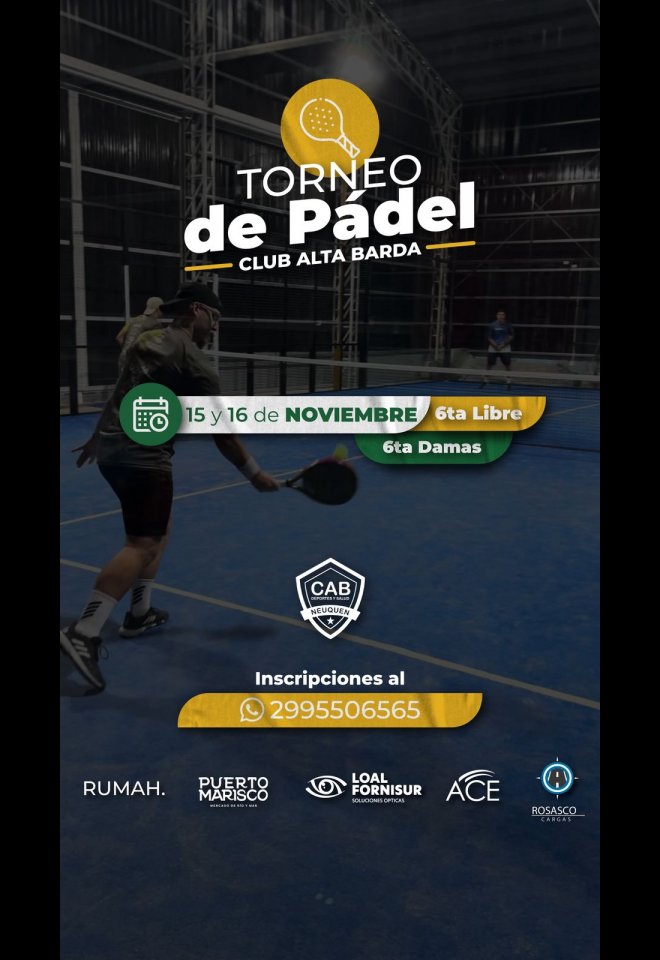 »» Evento: Torneo de Padel - Noviembre 2025 »» Localidad: Neuquén »» Fechas: 15/11/2025 al 16/11/2025